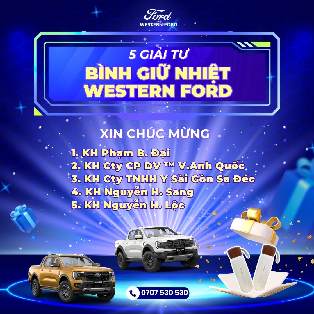 100% Khách hàng có Quà khi đến Western Ford sử dụng dịch vụ với hóa đơn Dịch vụ trên 4TR (chưa gồm VAT) sẽ nhận ngay 1 lượt tham gia quay Vòng xoay may mắn